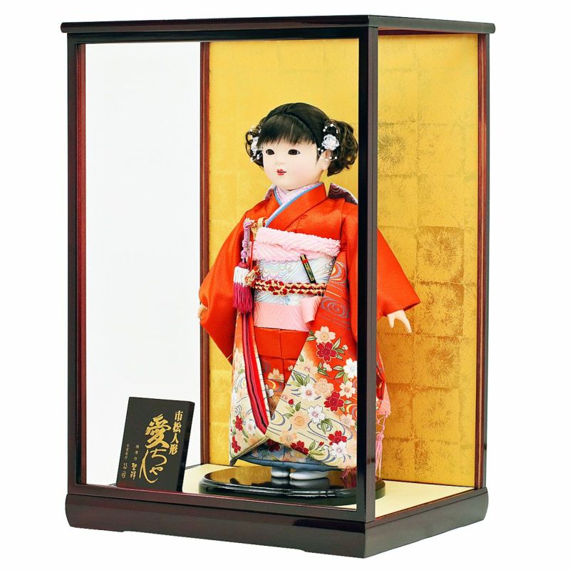 上質感ある衣装は、深みのあるシックな色合いが魅力で、時節を問わず飾っていられる、市松人形飾り・お祝い人形飾りの伝統工芸品です。