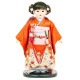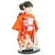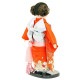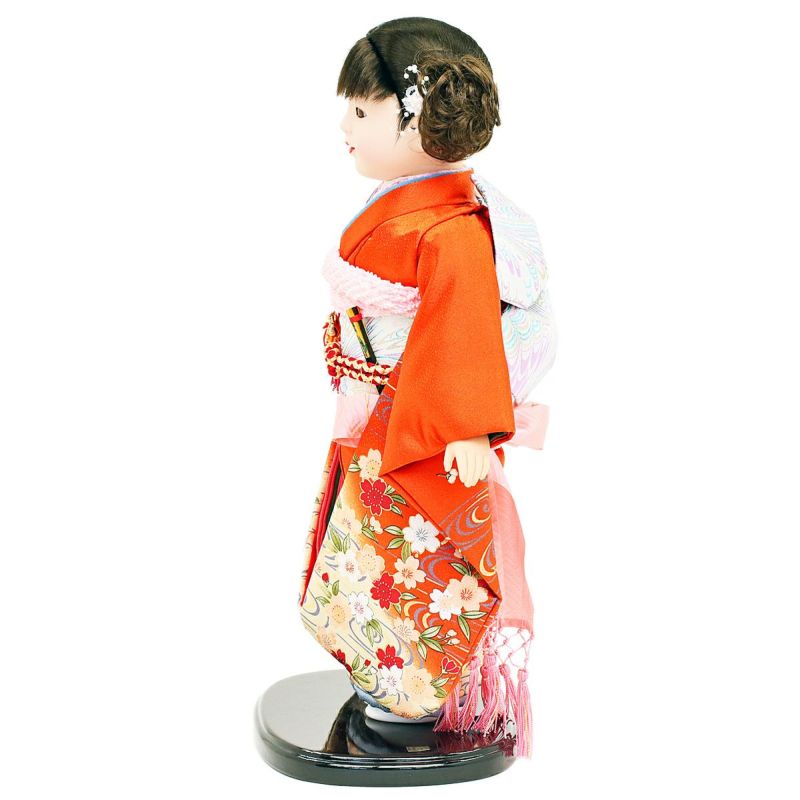 朱色の着物に桜柄がとても艶やかな、上質衣装をまとった市松人形です。