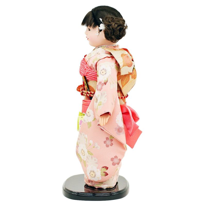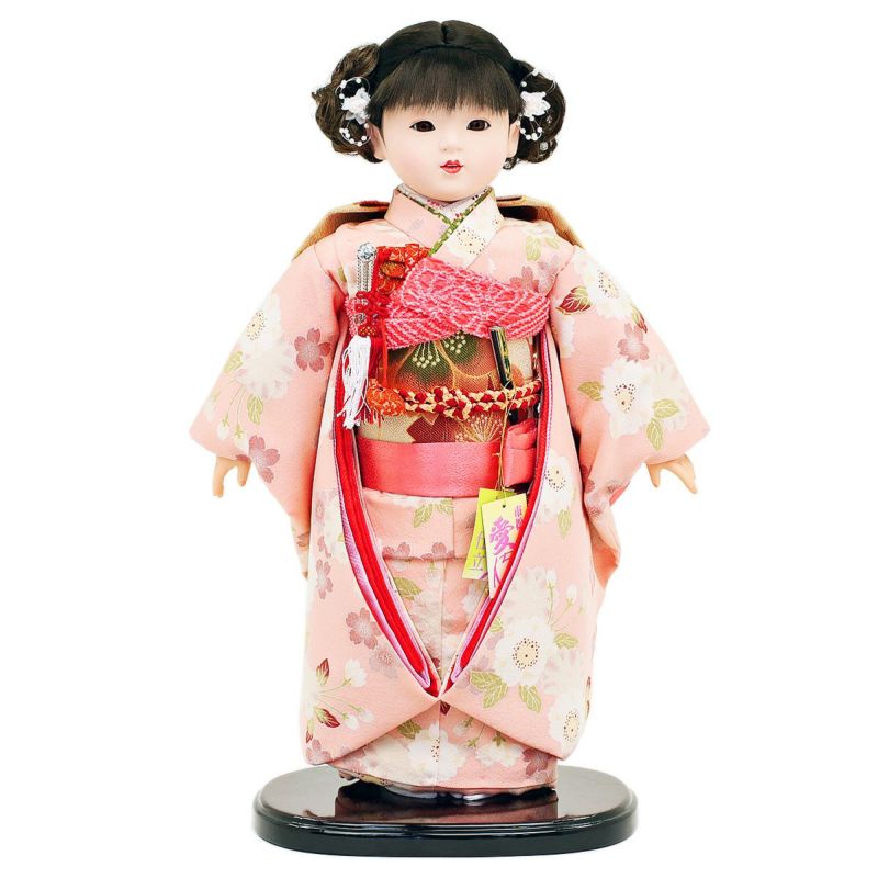 市松人形 齊藤公司作 13号 淡いピンク 桜柄 ケース入り 横幅42cm