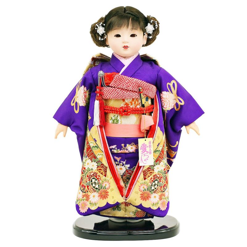 市松人形 齊藤公司作 13号 艶やかな紫地 花柄 ケース入り 横幅42cm