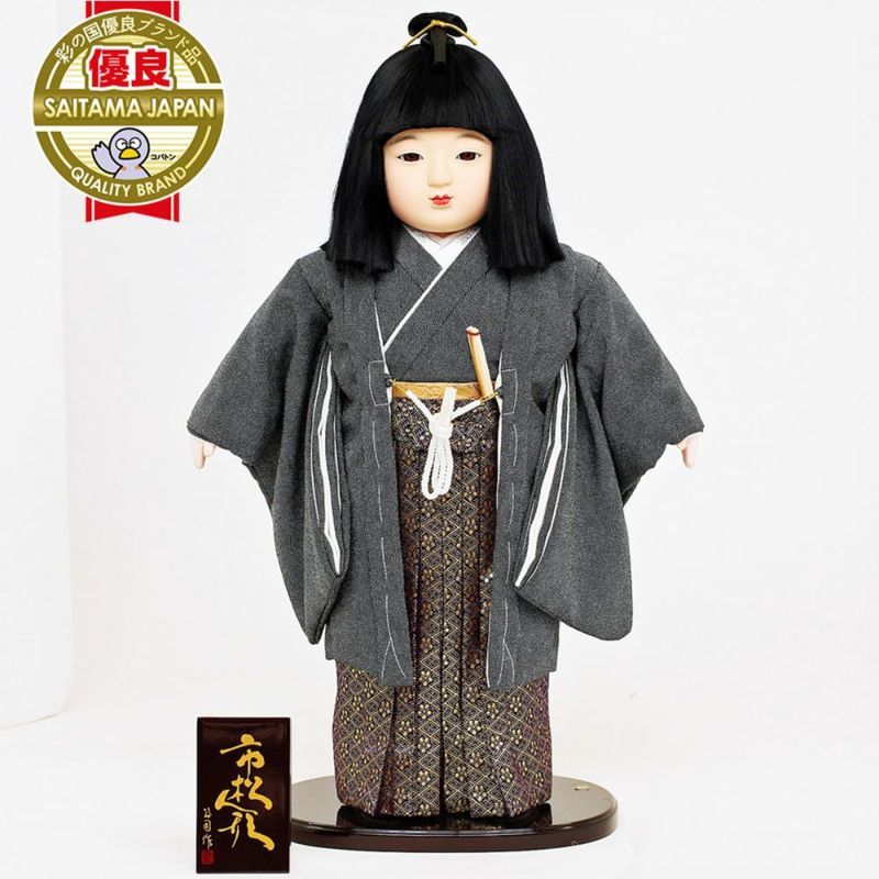 瑞宝単光章 受賞歴のある、名匠・公司作(経済産業省認定・岩槻人形伝統工芸士、埼玉県認定伝統工芸士、日本人形協会認定・節句人形工芸士)の市松人形です。