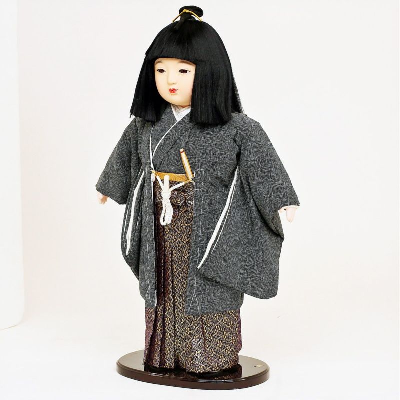 男の子の市松人形は、女の子のお姿をした市松人形とご一緒に、対で飾ることが多いですが、男児のご誕生のお祝いに、五月人形の代わりにお買い求められる事も少なくないです。