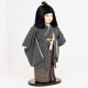 小紋柄の古典的衣装をまとった、市松人形です。