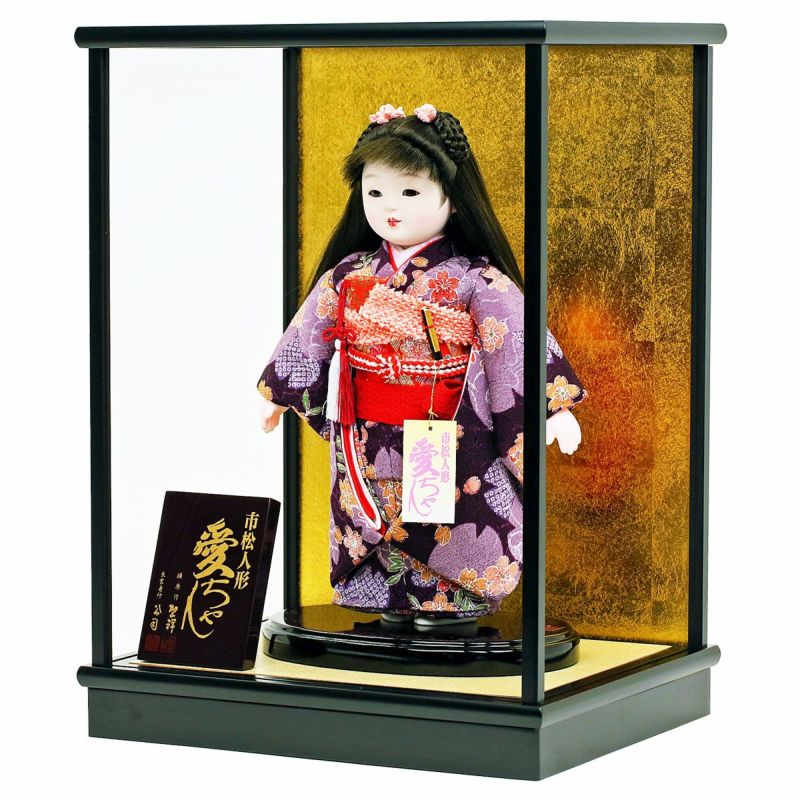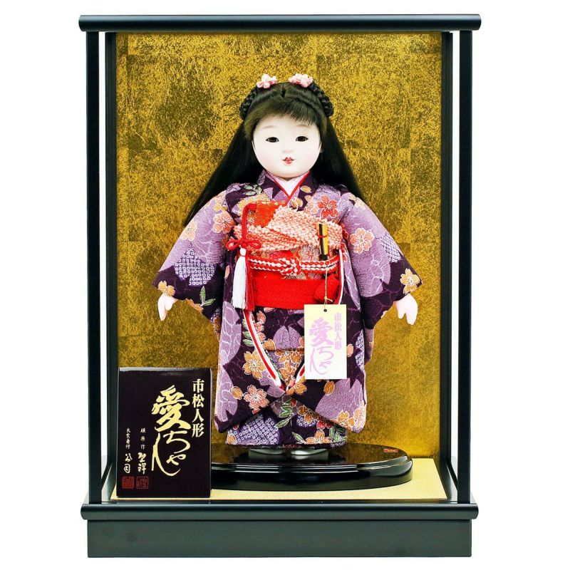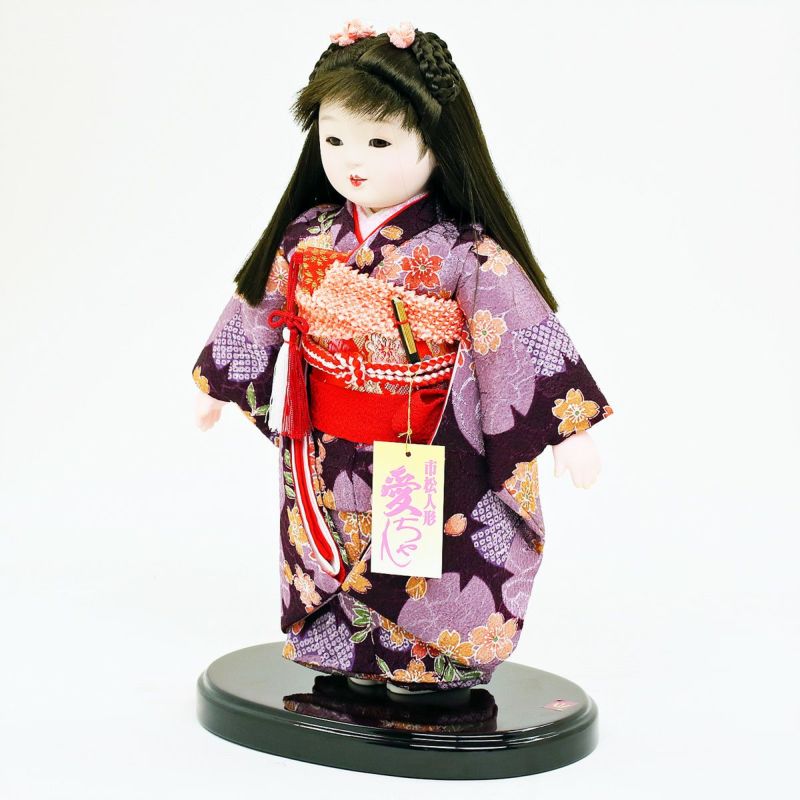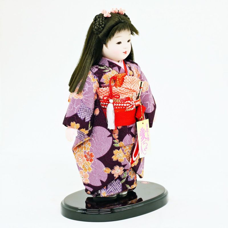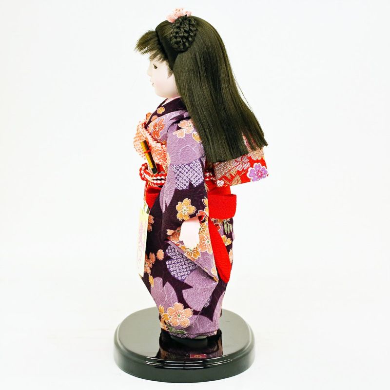 市松人形 齊藤公司作 6号 京都西陣裂地 気品ある紫 桜柄 ケース入り 横幅29cm