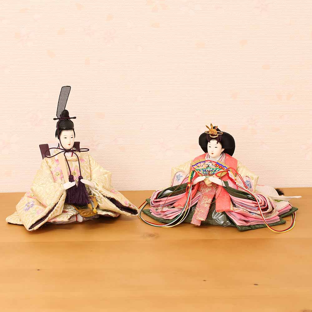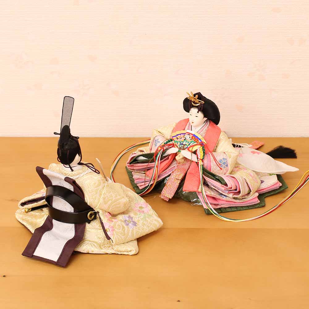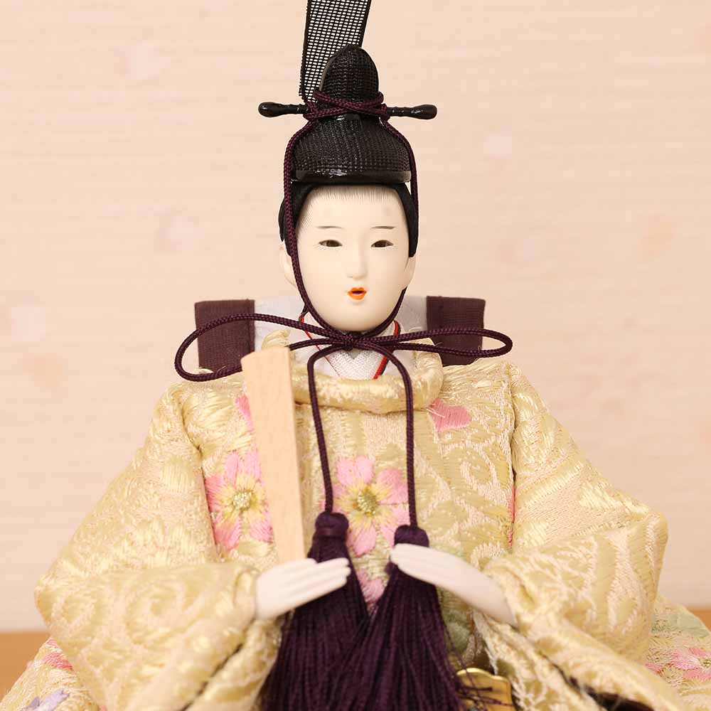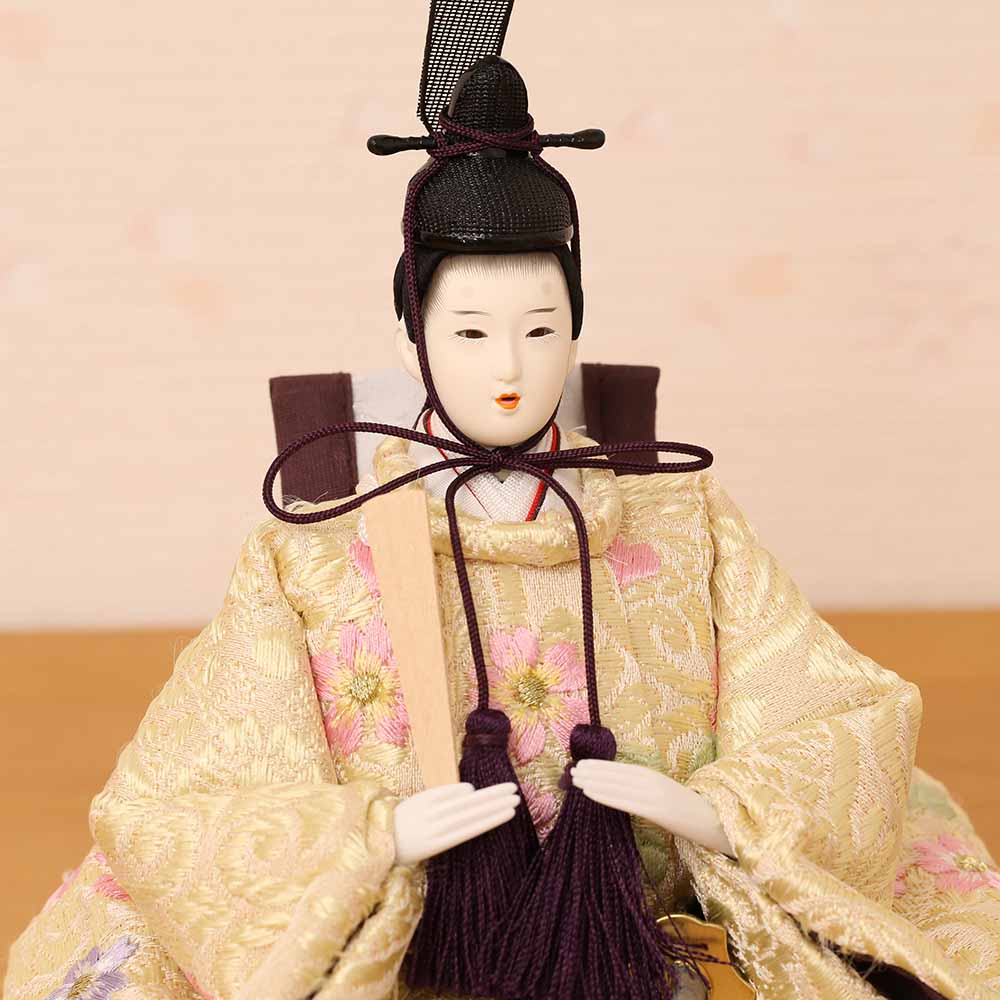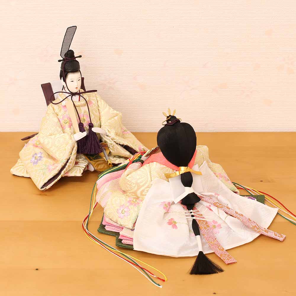 桜柄刺繍の衣装を身にまとった、お雛様