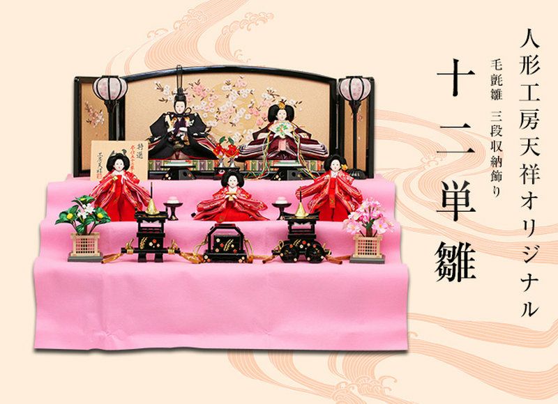 また、収納飾りでは珍しい三人官女付き三段飾り・五人飾りは、賑わいと豪華さが増してお子様にも大人気の商品です。