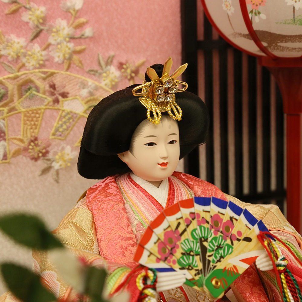 ピンク色系のケース飾り雛人形や、ピンクや水色といったパステルカラーのお雛様の衣裳も 女の子のお節句らしさが表現されていて人気が高いです。