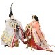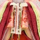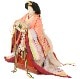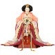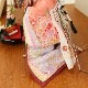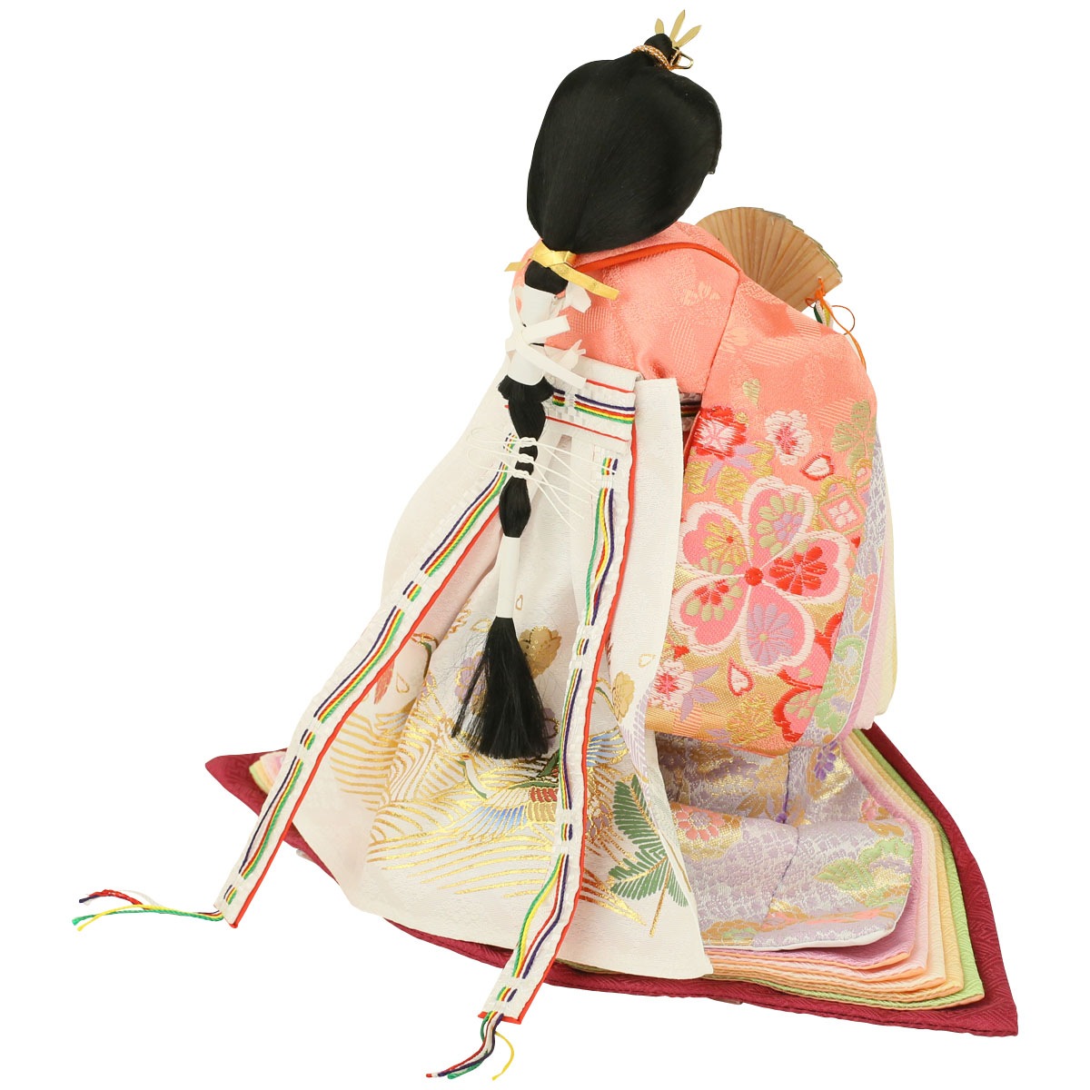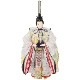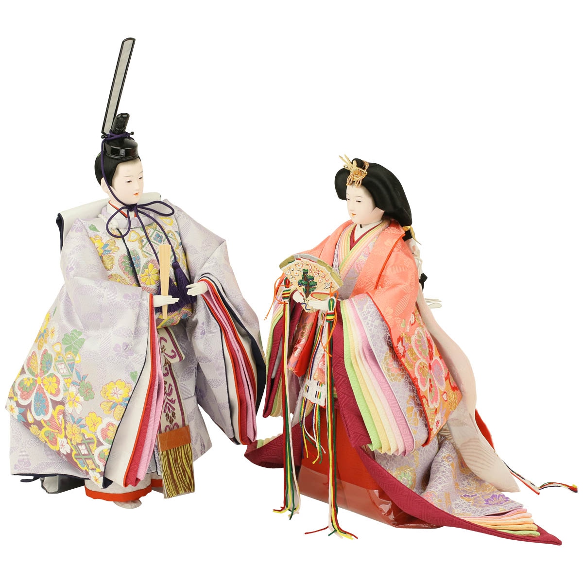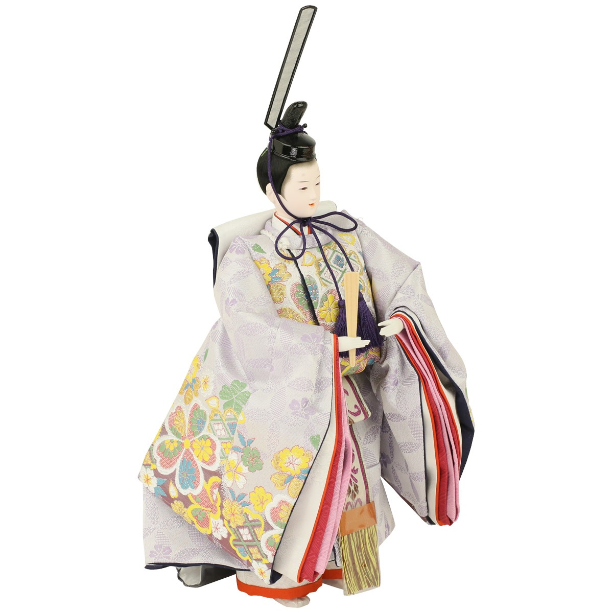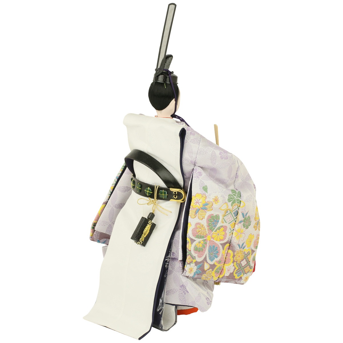 男雛には藤色、女雛にはピンク色地に花模様柄が織り出された、 京都西陣金襴織物の上質衣装です。