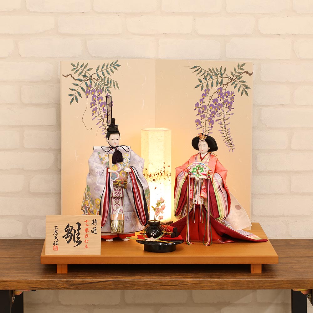 雛人形 工房天祥 立雛 三五親王 和紙風藤の花屏風 横幅58cm