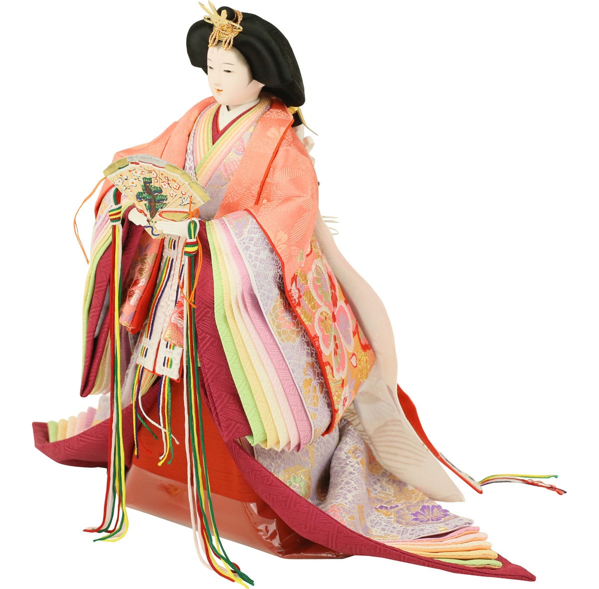 衣裳着立姿雛飾りは、間口は小さめ、縦の高さはスッとして 全体的にはな印象を与えながらも、艶やかさ や華やかさは人目を惹いて豪華に、そしてコンパクトに飾るこ とが出来る“立ち姿”の雛人形飾りです。