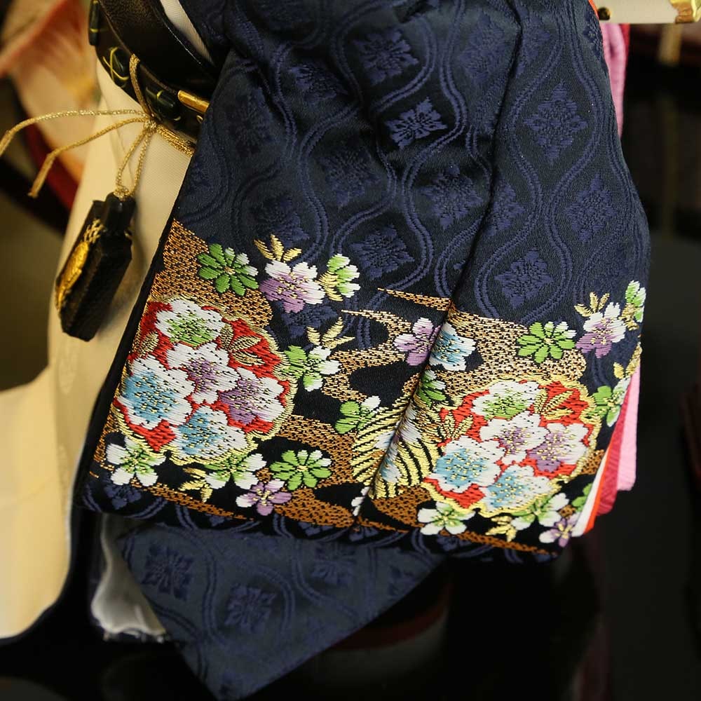 雲立湧紋の裂地に桜柄が織り出された、京都西陣織物の上質衣装です。