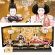 男雛と女雛のお二人がお揃いの同じ色柄の衣装は、共布(ともぎれ)と呼ばれ、「末永く共に一緒に」という意味合いが込められた縁起物の雛人形です。