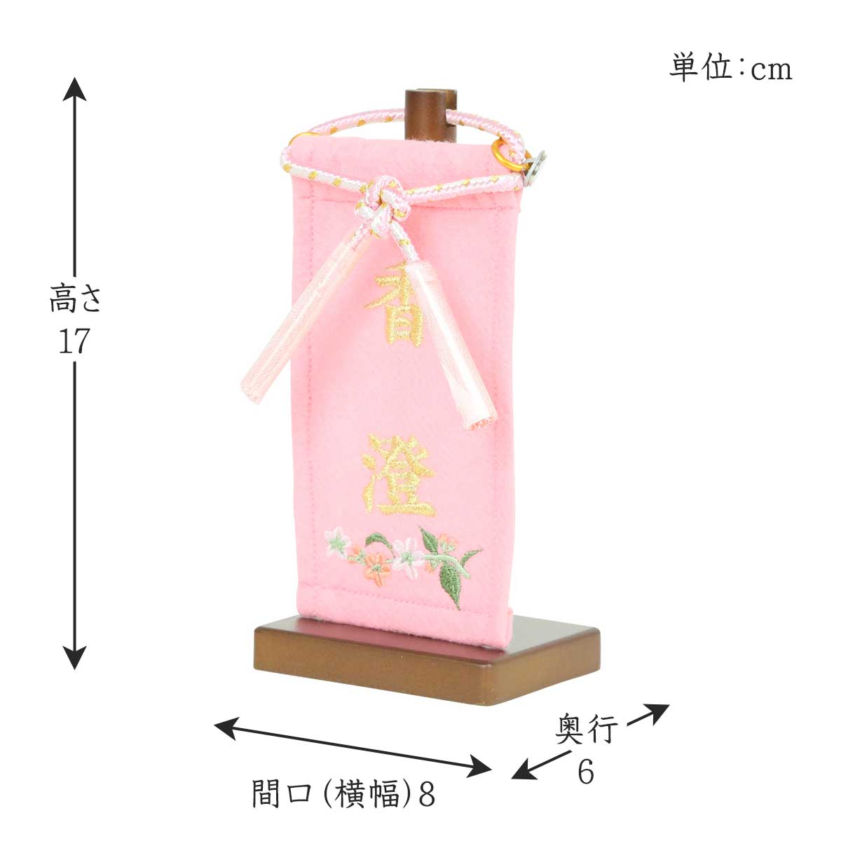 こちらは、「ぷち名前旗 赤・ピンク・白」色地に金糸刺繍でお名前をお入れする、ケース飾り専用の名前旗です。