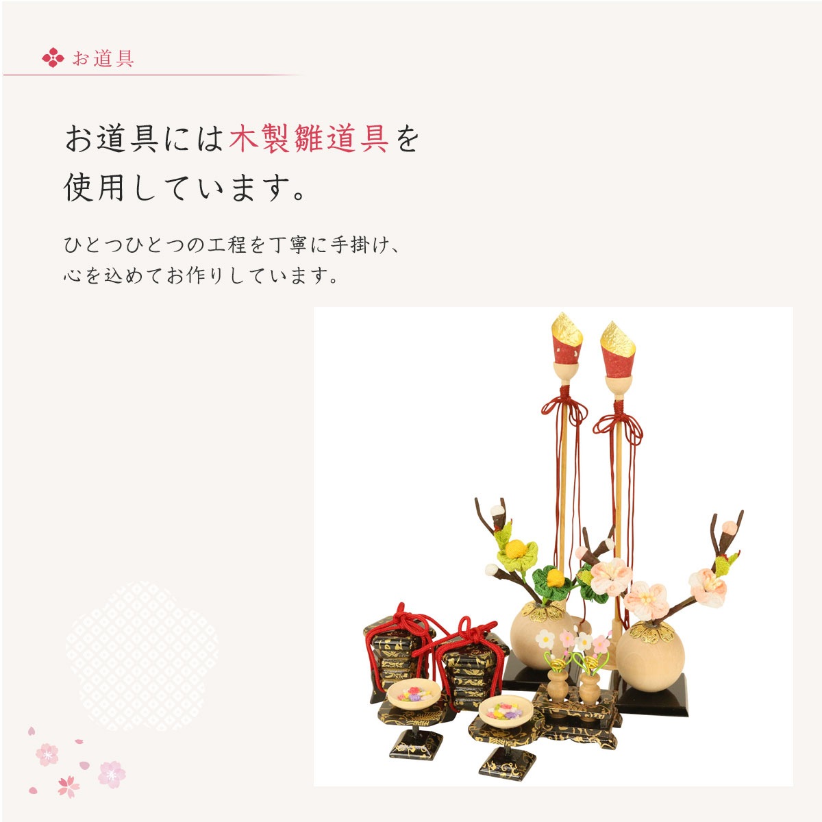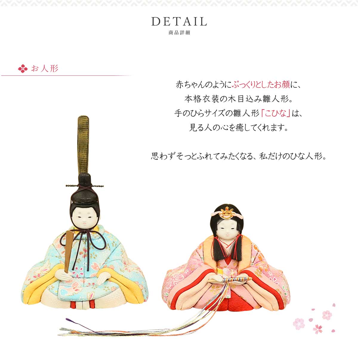 ※雛人形は手作り品のため、多少の色ムラや細かいほつれがあることをあらかじめご了承下さい。