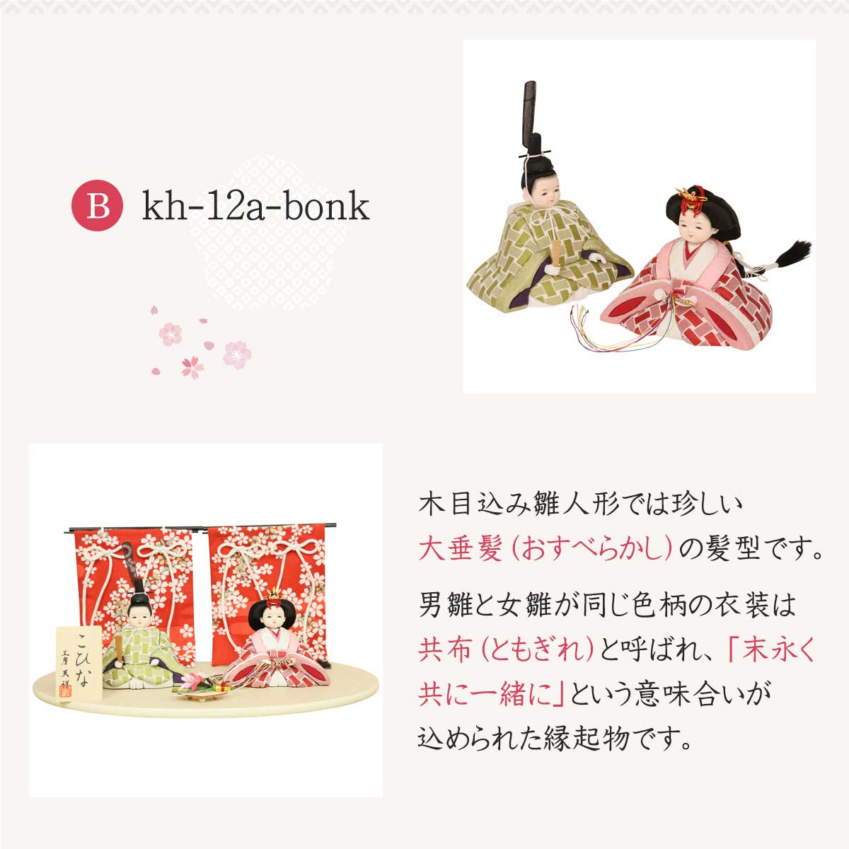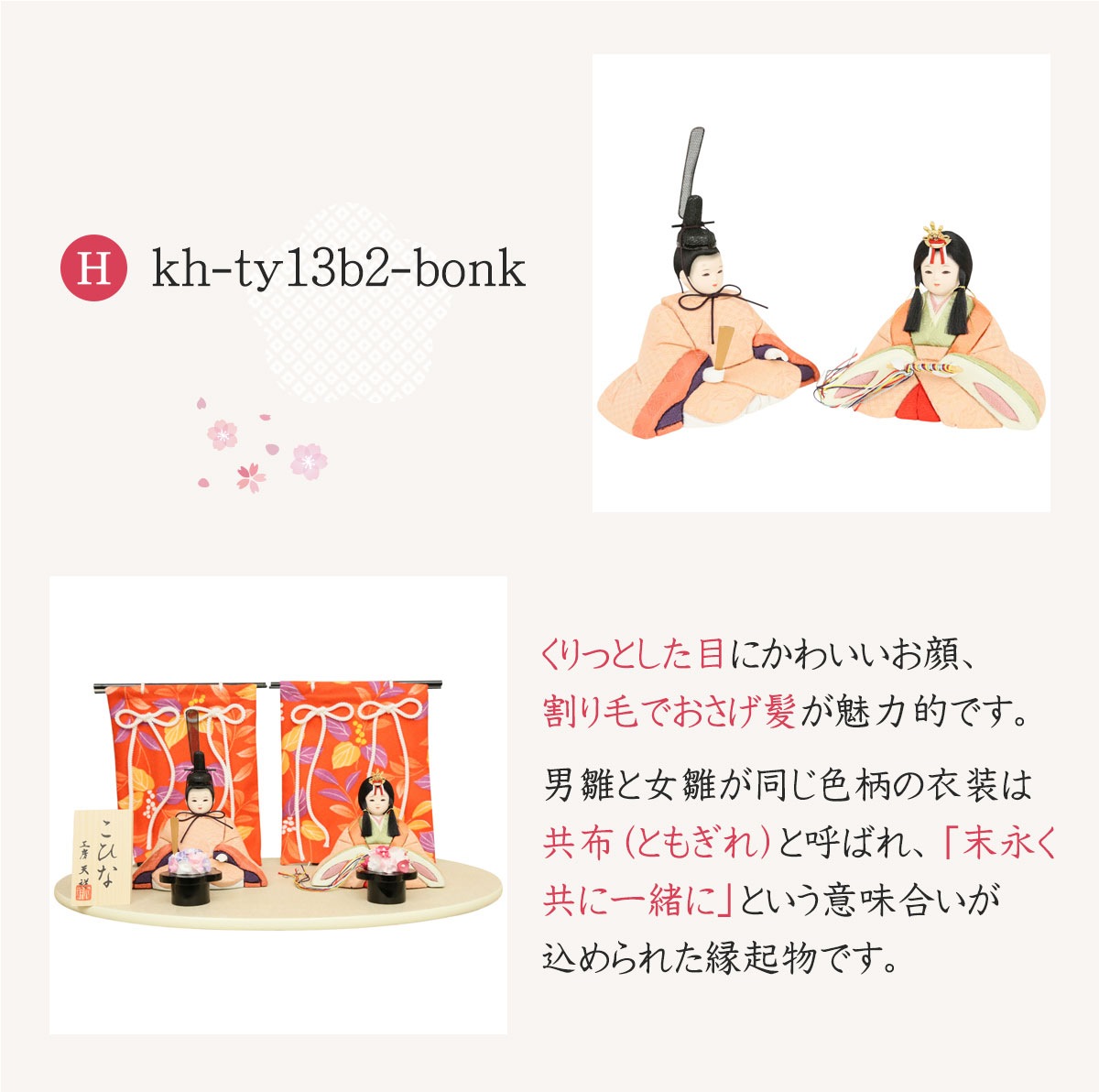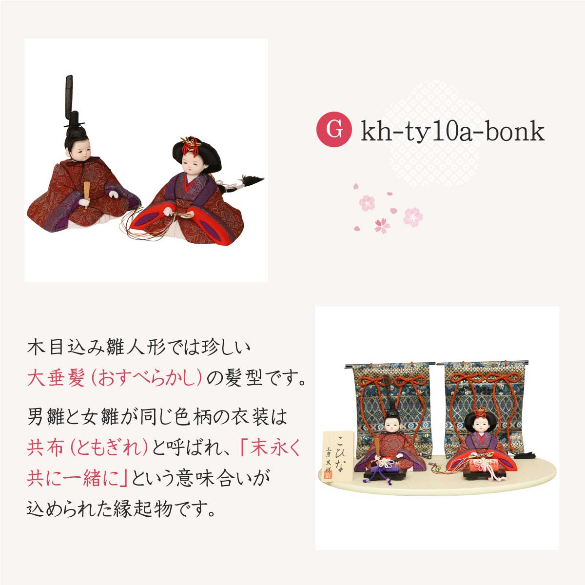 また、割り毛でおさげ髪、そして木目込み雛人形には珍しく、くりくりお目目のかわいいお顔が魅力的です。[G] kh-ty10a-bonk