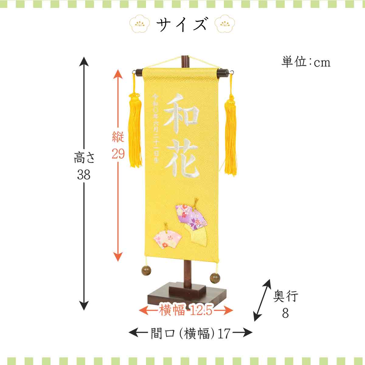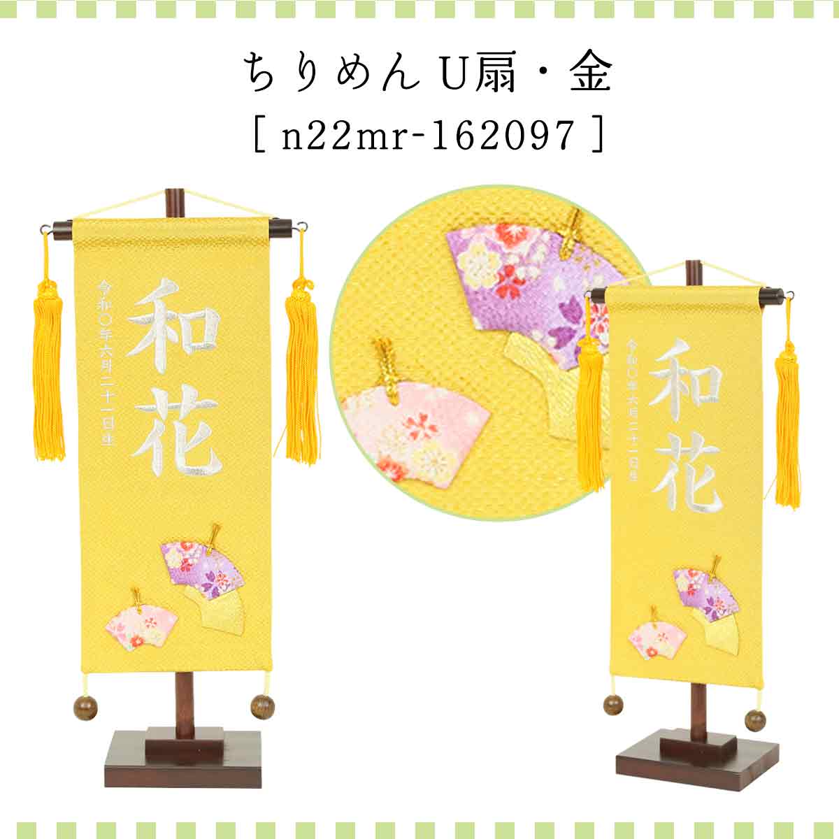 雛人形 村上鯉のぼり 名前旗 小 刺繍 ちりめん金 U扇 名前 生年月日入可能 スタンド付 横幅17cm