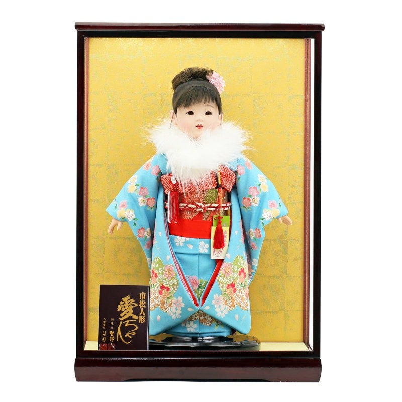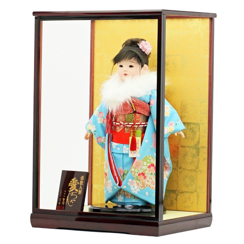 市松人形 公司作 市松人形13号 ファー付き ケース飾り 横幅42cm