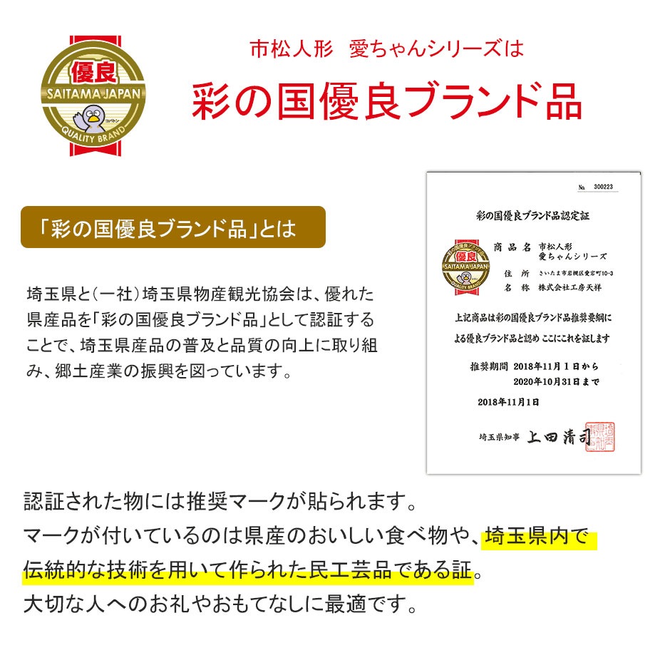 お人形の製造メーカー・卸として50年の実績と、たしかな品質とともにある、“人形工房天祥オリジナル・限定”の「公司作 市松人形」です。