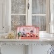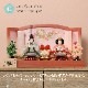 男雛には藤色、女雛にはピンクを基調とし桜模様柄が織り出されたお衣裳は、背景の“マリと桜”柄の刺繍のパステルカラーにもマッチした春らしい雰囲気が魅力的です。