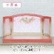 マリと桜の刺繍がほどこされたピンク色の台屏風セットが、かわいい雛人形に仕上げています。