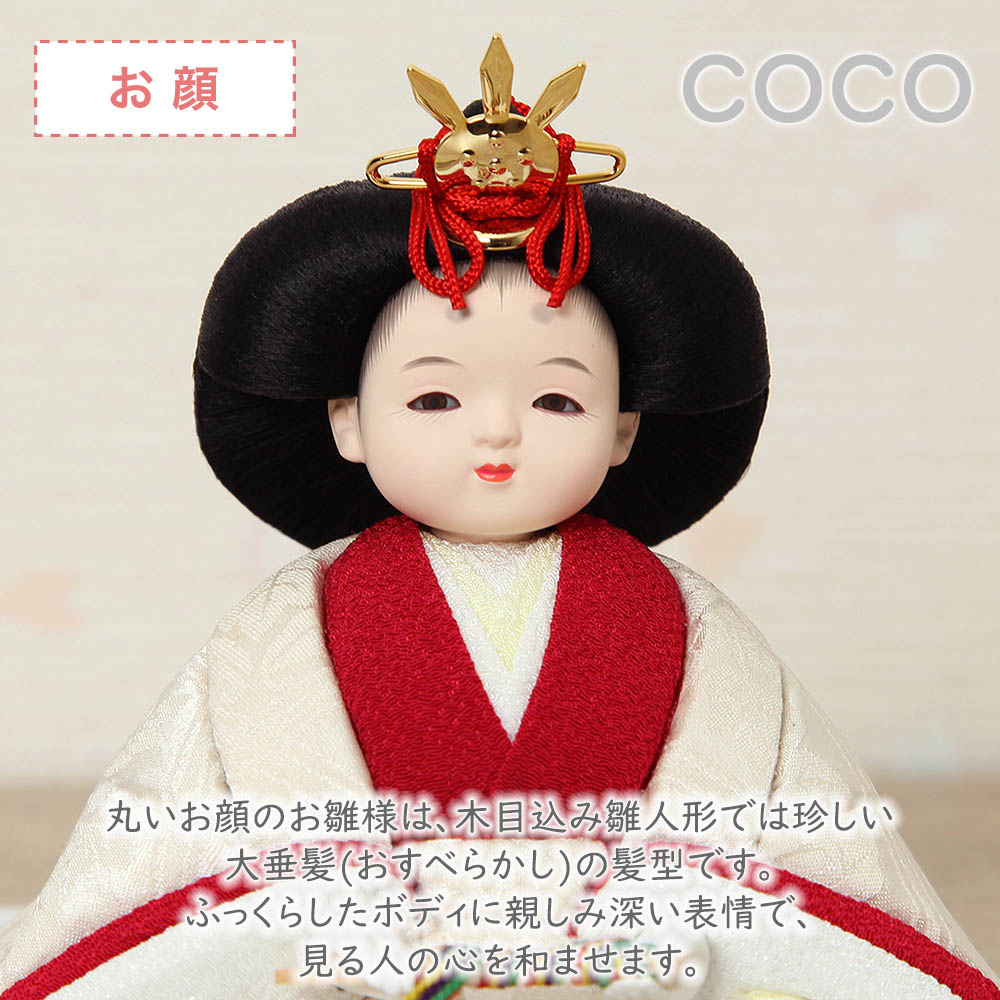 雛人形 ココ 木目込み 親王飾り 白無垢 金屏風 ティピシリーズ 横幅40cm