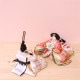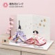 男雛には白地、女雛にはピンク地に古典的な花文様柄が織り出された、春らしい雰囲気満載の親王飾りです。“金銀箔押し”桜散らしの屏風によって、内裏雛の華やかさがより際立っています。