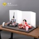 黒色台に白色屏風のスタイリッシュなセットに、京都西陣金襴織物のお衣裳のお雛様を合わせています。
