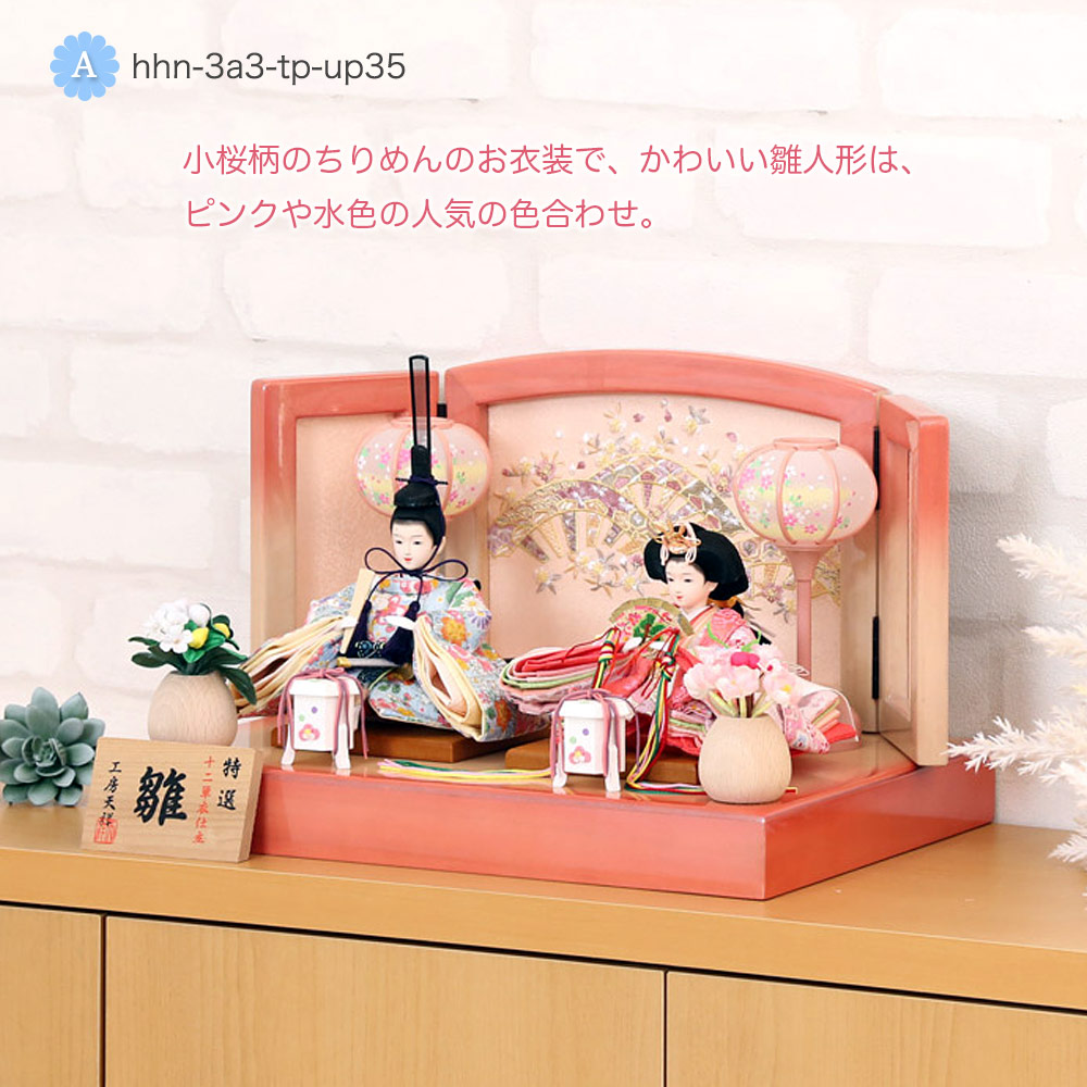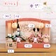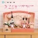 “扇に桜”柄が刺繍されたピンクベージュの台屏風セットに、京都西陣金襴織物やちりめん裂地のお着物をお召しになられた柳親王のお雛様を合わせました。 間口(横幅)35×奥行25×高さ22.5(cm) 小桜柄のちりめんのお衣装で、かわいい雛人形は、ピンクや水色の人気の色合わせ。女の子のお節句らしい古典的なお衣裳のちりめん素材が、優しい印象の親王飾りに仕上げています。 小桜柄が華やいだ京都西陣金襴織物のお衣装は、女雛にはピンク色、男雛には薄紫色のおしゃれな配色が魅力的です。 古典的な花模様柄が華やいだ京都西陣金襴織物のお衣装は、女雛にはピンク色、男雛にはミントグリーン系色の春らしい配色が魅力的です。