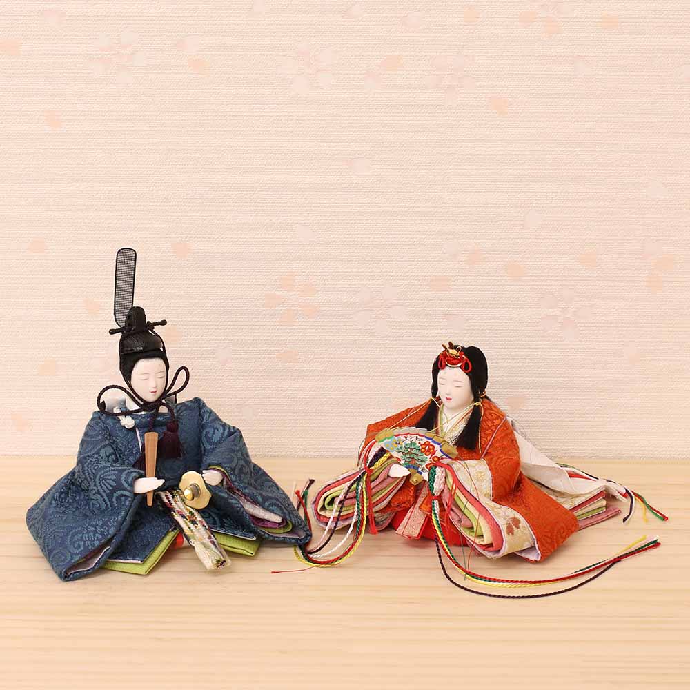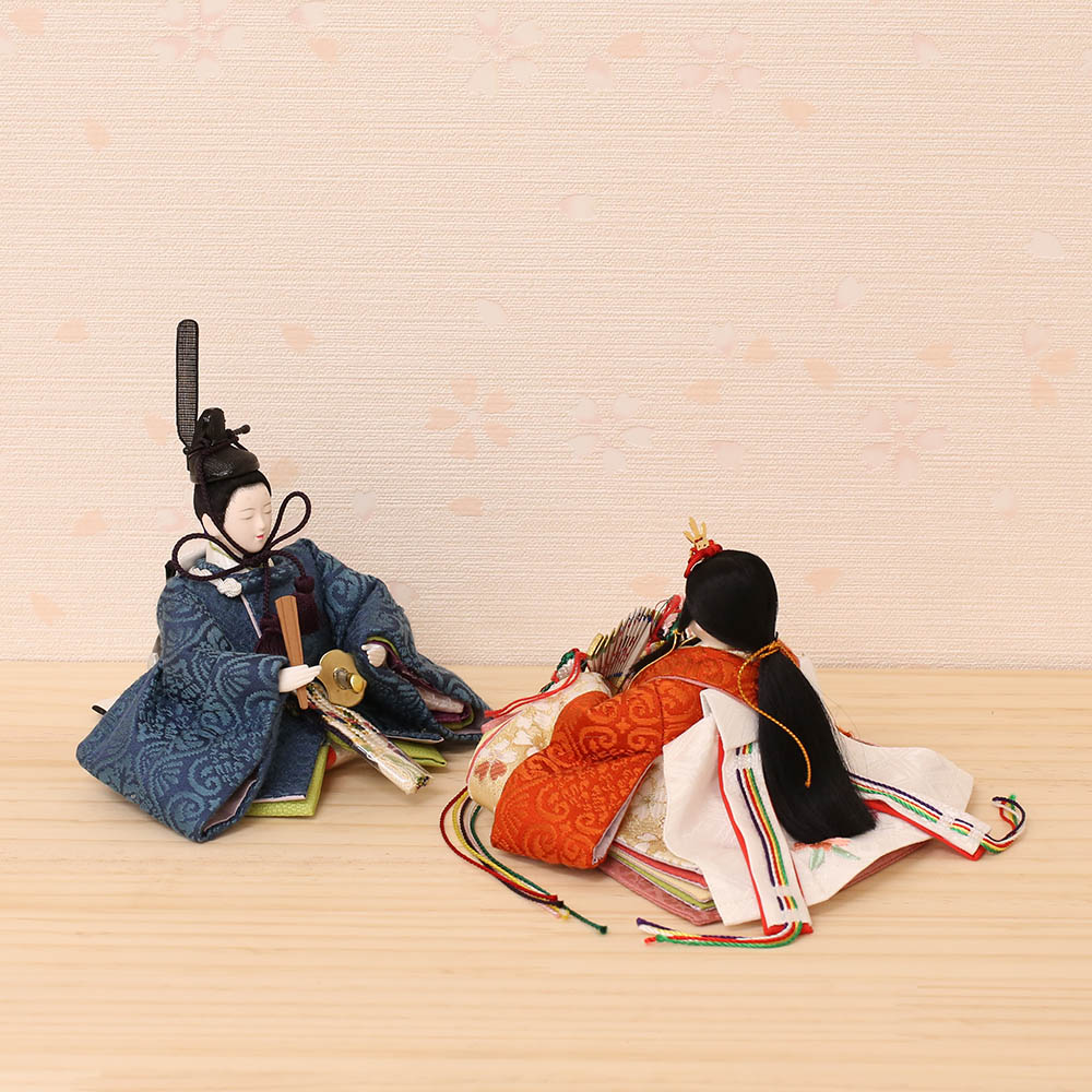フローリング・洋室にも合わせやすく人気な、コンパクト木目込み雛人形 親王飾りです。