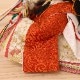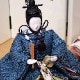 京都西陣裂地のお衣裳は、コンパクトなサイズにもかかわらず、上質感が魅力のお雛様で、女雛のお袖のボリューム感もあって、優美なお姿です。