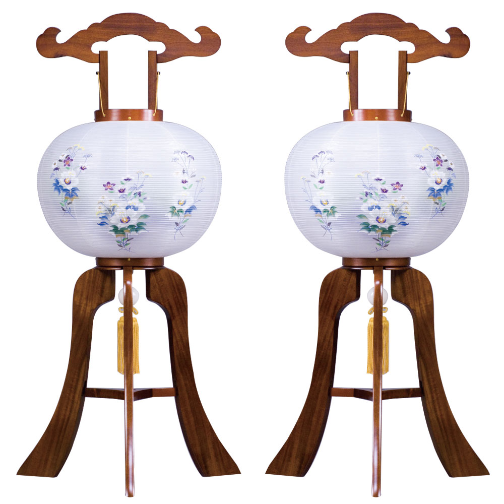 盆提灯 置き提灯 対柄行灯 極太桜調 対柄 12号 40W 絹二重絵 書き絵 鉄仙 天然木 ●7営業日で発送/家紋・名入の場合+10日間 1/15より順次発送