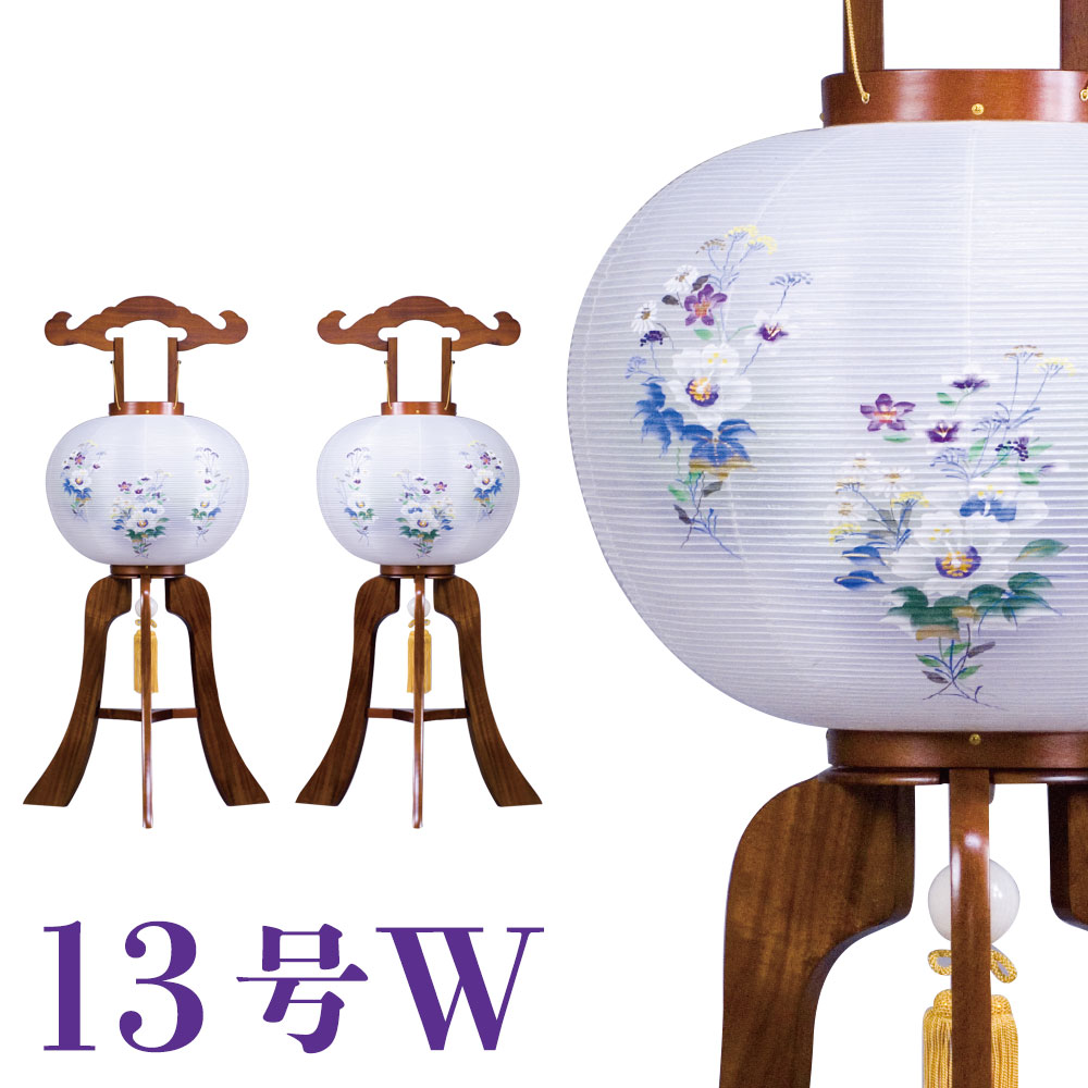 ※絹二重とは外袋が絹張りで、内袋がビニロン加工のことです。 ※絵柄は若干異なることがございます。ご了承ください。 【商品仕様】 サイズ:13号W 39x97cm 一対 素材:[提灯]外袋 絹・内袋 ビニロン加工 【家紋・家名入れ /オプション価格(税別)】 紋入/手書/+6300/カッティングシート/+4800 家名入り/手書+4800/カッティングシート+4200 文字入(10cm未満)/手書+6300/カッティングシート+4800伝統工芸の美しさそのままに 日本の心、本場・岐阜提灯 清涼感ある火袋と明かりから浮き出る優雅さ 人々の心に、やさしさと安らぎを与えてくれます。 匠の技が織りなす日本伝統工芸の美しさを伝える本場・岐阜提灯で精霊をお迎えいたします。 ※こちらの商品は配送までに7営業日お時間を頂いておりますのでご了承下さい。