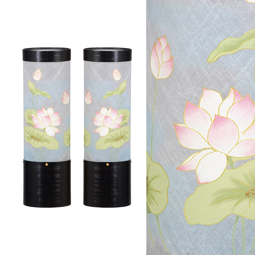 盆提灯 置き提灯 対柄行灯 極太桜調 対柄 12号 40W 絹二重絵 書き絵 鉄仙 天然木 ●7営業日で発送/家紋・名入の場合+10日間 1/15より順次発送