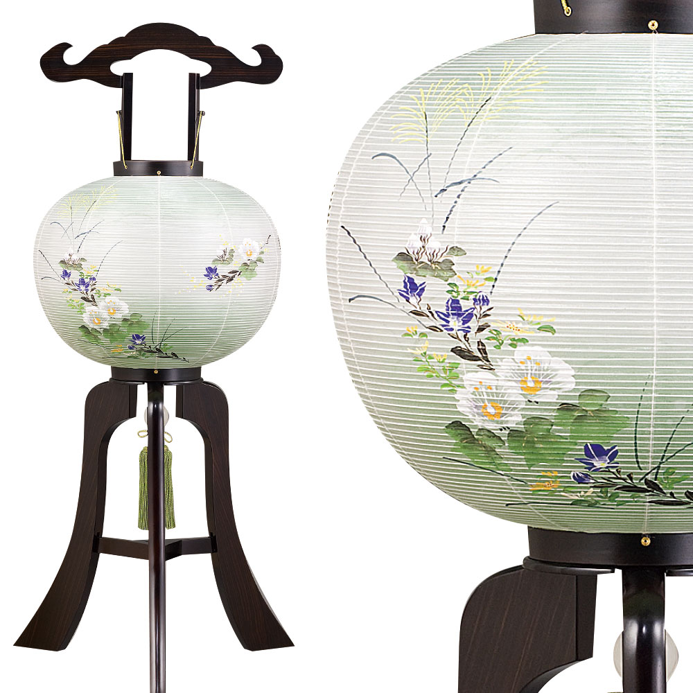 盆提灯 置き提灯 銘木工芸行灯 たまふさ 10号 桜調 25W 絹張 書き絵 鉄仙 木製 回転筒 青 花 ●7営業日で発送/家紋・名入の場合+10日間 1/15より順次発送