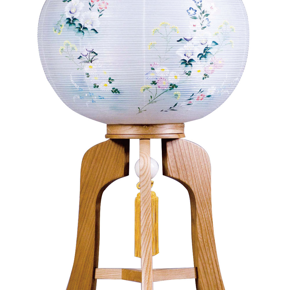 盆提灯 置き提灯 銘木工芸行灯 たまふさ 10号 桜調 25W 絹張 書き絵 鉄仙 木製 回転筒 青 花 ●7営業日で発送/家紋・名入の場合+10日間 1/15より順次発送