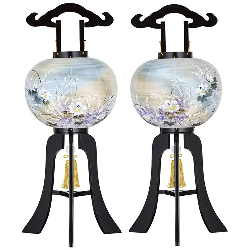 盆提灯 置き提灯 対柄行灯 極太桜調 対柄 12号 40W 絹二重絵 書き絵 鉄仙 天然木 ●7営業日で発送/家紋・名入の場合+10日間 1/15より順次発送
