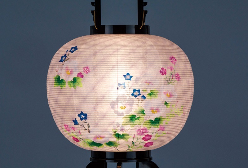 盆提灯 置き提灯 銘木工芸行灯 たまふさ 10号 桜調 25W 絹張 書き絵 鉄仙 木製 回転筒 青 花 ●7営業日で発送/家紋・名入の場合+10日間 1/15より順次発送