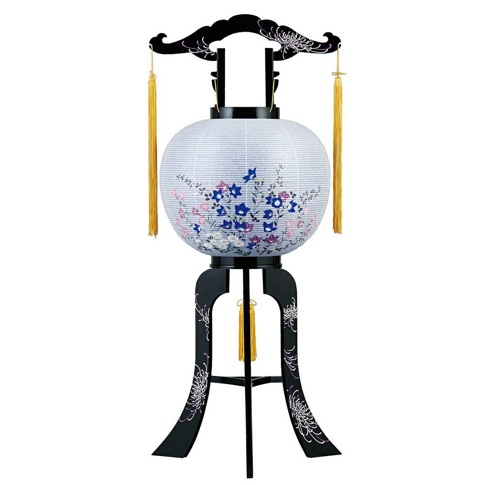 盆提灯 置き提灯 銘木工芸行灯 たまふさ 10号 桜調 25W 絹張 書き絵 鉄仙 木製 回転筒 青 花 ●7営業日で発送/家紋・名入の場合+10日間 1/15より順次発送