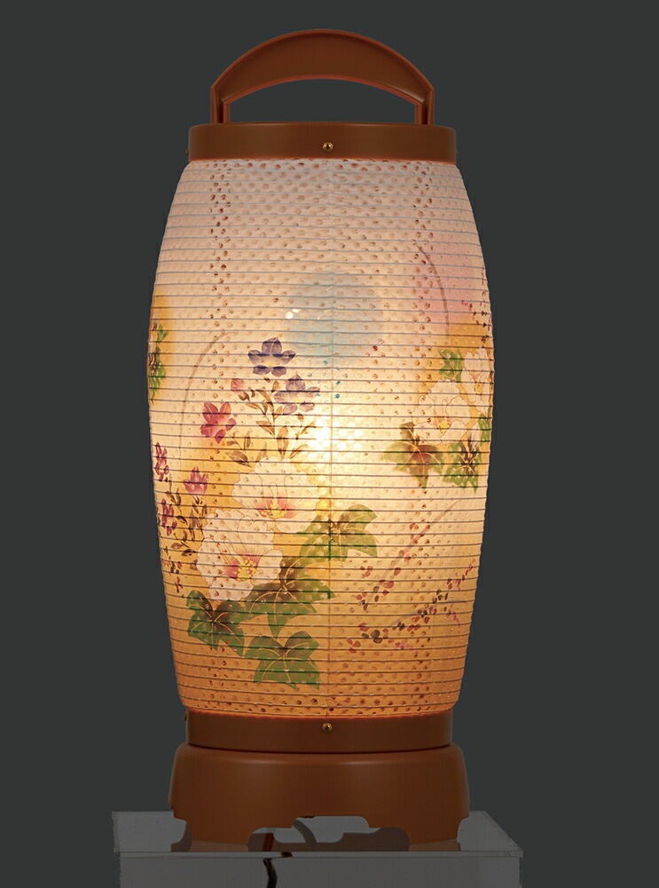 盆提灯 置き提灯 銘木工芸行灯 たまふさ 10号 桜調 25W 絹張 書き絵 鉄仙 木製 回転筒 青 花 ●7営業日で発送/家紋・名入の場合+10日間 1/15より順次発送