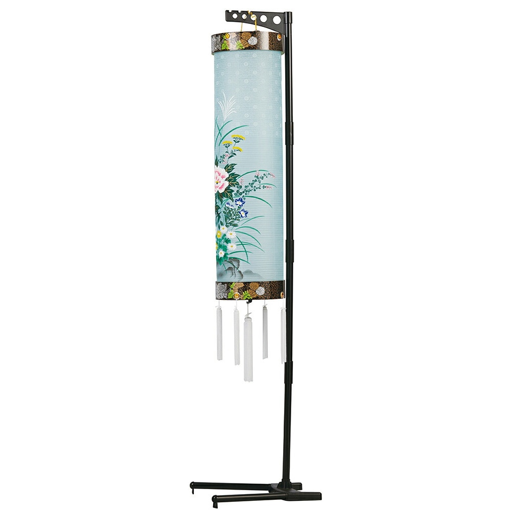 盆提灯 置き提灯 回転行灯 コードレス 回転 島風 対柄 LED電池灯SW 紙張 書き絵 菊に萩 プラスチック 回転筒 青 水玉 ●7営業日で発送/家紋・名入の場合+10日間 1/15より順次発送