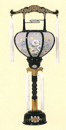 盆提灯 置き提灯 対柄行灯 極太桜調 対柄 12号 40W 絹二重絵 書き絵 鉄仙 天然木 ●7営業日で発送/家紋・名入の場合+10日間 1/15より順次発送