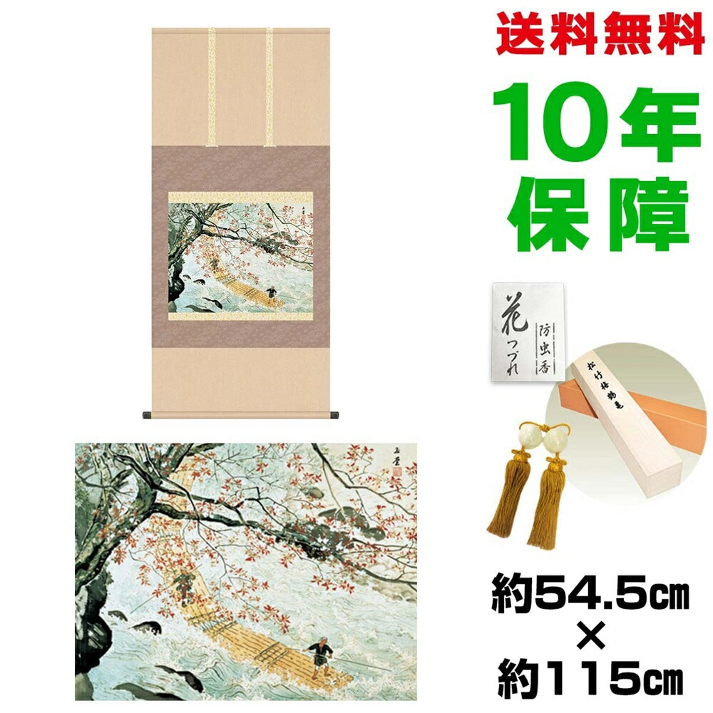 掛け軸 床の間 モダン 和風 尺五 花筏 川合玉堂 洛彩緞子本表装 約54.5 115cm 新絹本 表装品質10年間保証 収納箱 防虫香 風鎮 付き 複製画 1/15以降順次発送