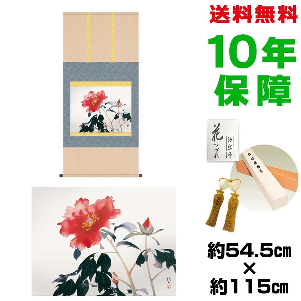 掛け軸 床の間 モダン 和風 尺五 牡丹 川端龍子 洛彩緞子本表装 約54.5 115cm 新絹本 表装品質10年間保証 収納箱 防虫香 風鎮 付き 複製画 1/15以降順次発送