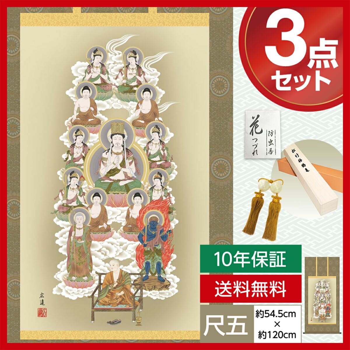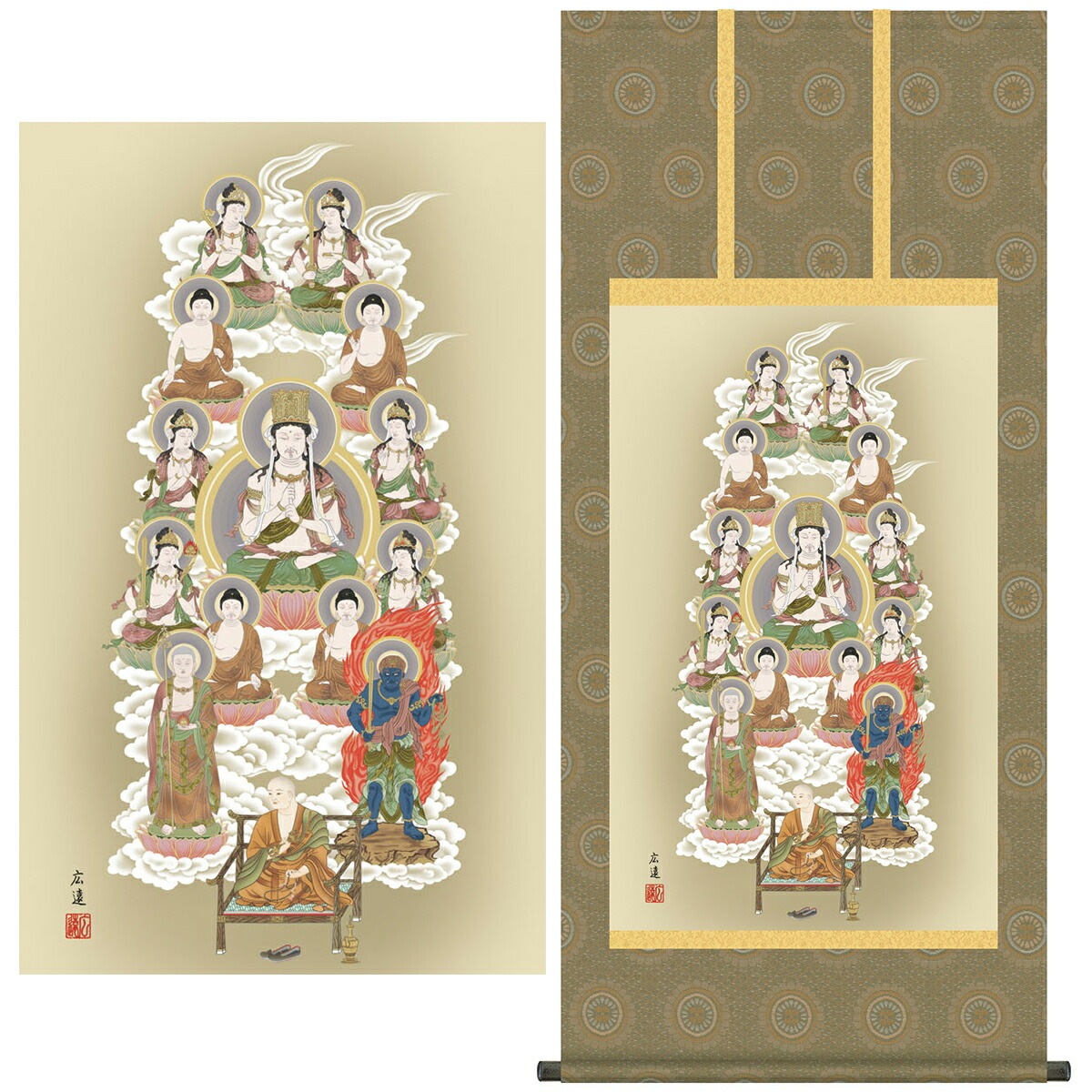 掛け軸 床の間 モダン 和風 仏事掛軸 尺五 真言十三佛 田中 広遠 白翠会 54.5cm 約120cm 洛彩緞子丸表装 10年間保証 収納箱 防虫香 風鎮 付き 1/15以降順次発送