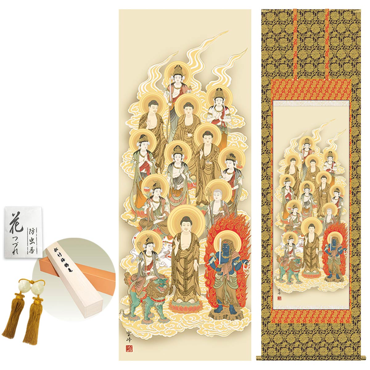 掛け軸/モダン/十三佛/清水雲峰/金襴本佛表装/幅54.5×高さ約190cm/新絹本/表装品質10年間保証/掛け軸/モダン/収納箱/防虫香/風鎮/付き/モダン/おしゃれ/かわいい/掛軸/日本の巨匠/複製画