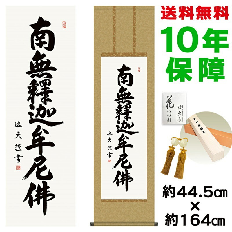 掛け軸 床の間 モダン 和風 釈迦名号 中田逸夫 洛彩緞子丸表装 約44.5 164cm 新絹本 10年間保証 収納箱 防虫香 風鎮 付き 1/15以降順次発送