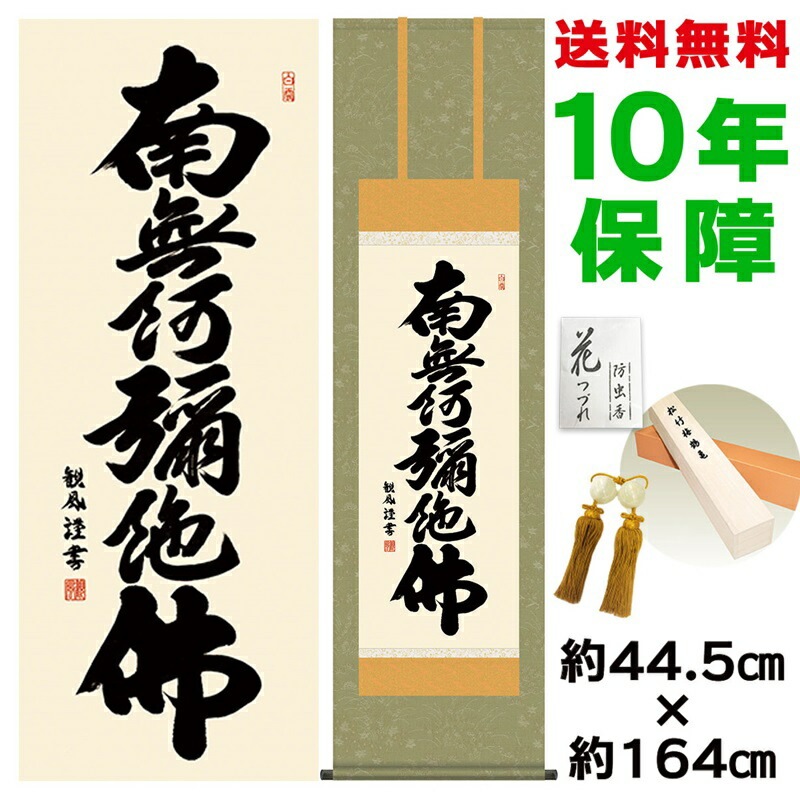 掛け軸 床の間 モダン 和風 六字名号 浅田観風 洛彩緞子佛表装 約44.5 164cm 新絹本 10年間保証 収納箱 防虫香 風鎮 付き 1/15以降順次発送