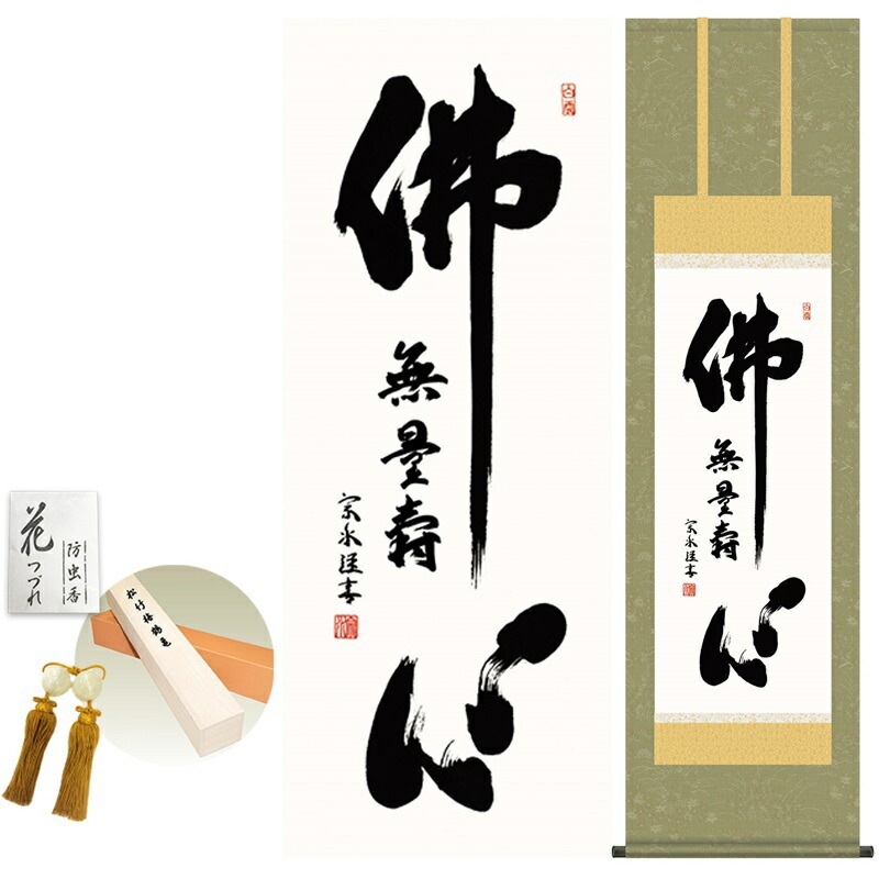 掛け軸/モダン/仏心名号/小木曽宗水//洛彩緞子佛表装/幅44.5×高さ約164cm/新絹本/表装品質10年間保証/掛け軸/モダン/収納箱/防虫香/風鎮/付き/モダン/おしゃれ/かわいい/掛軸/日本の巨匠/複製画