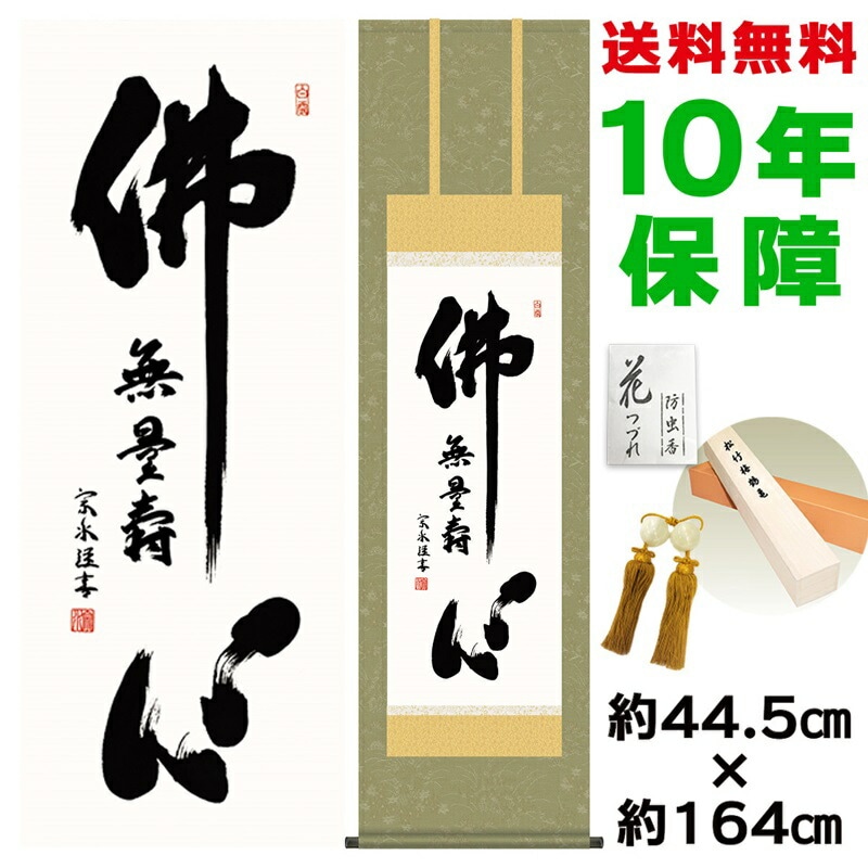掛け軸 床の間 モダン 和風 仏心名号 小木曽宗水 洛彩緞子佛表装 約44.5 164cm 新絹本 10年間保証 収納箱 防虫香 風鎮 付き 1/15以降順次発送