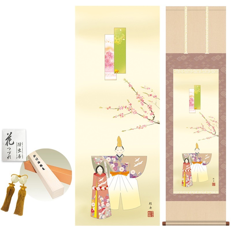 掛け軸/モダン/立雛/長江桂舟/洛彩緞子本表装/幅44.5×高さ約164cm/新絹本/表装品質10年間保証/掛け軸/モダン/収納箱/防虫香/風鎮/付き/モダン/おしゃれ/かわいい/掛軸/日本の巨匠/複製画